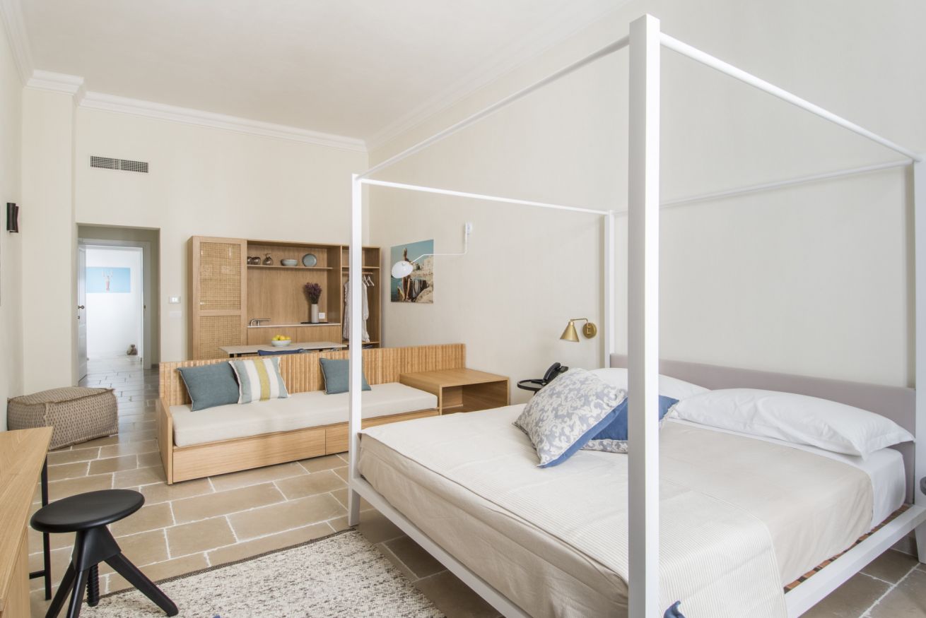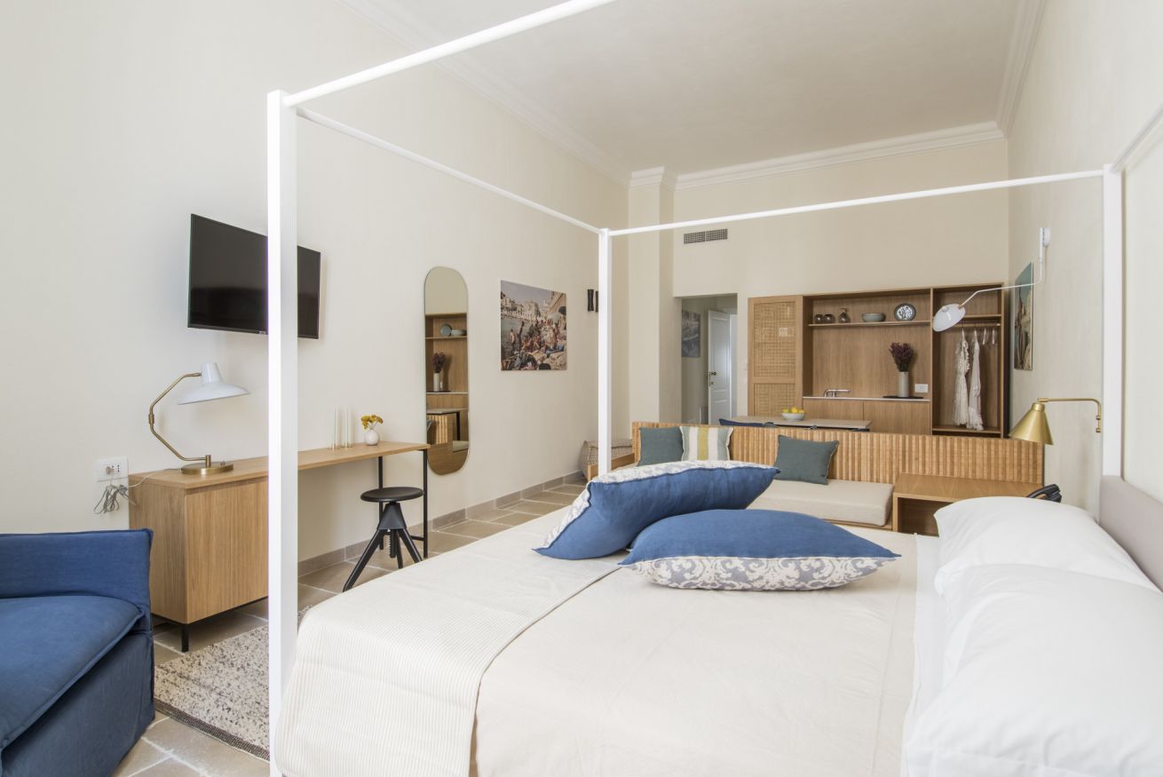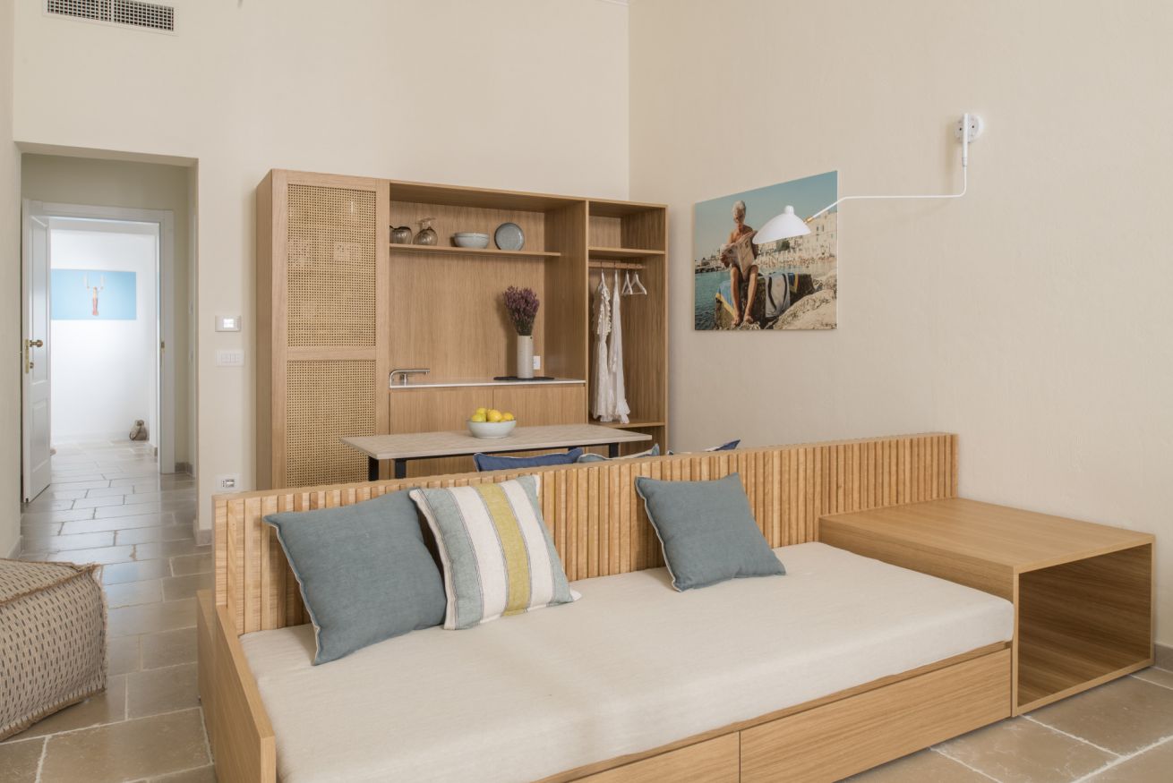L'appartamento Deluxe ha una vista suggestiva su due delle più belle e famose chiese di Monopoli, la Cattedrale e la Chiesa del Purgatorio. Questa tipologia offre una maggiore comodità data dalle dimensioni degli spazi più confortevoli.