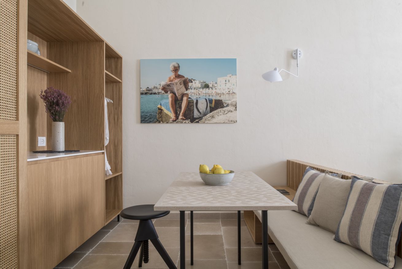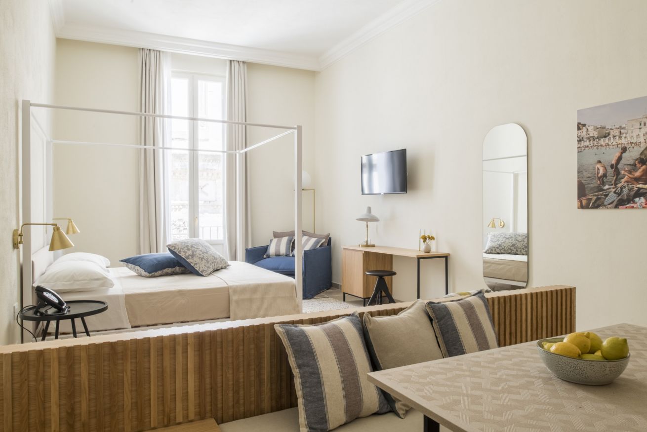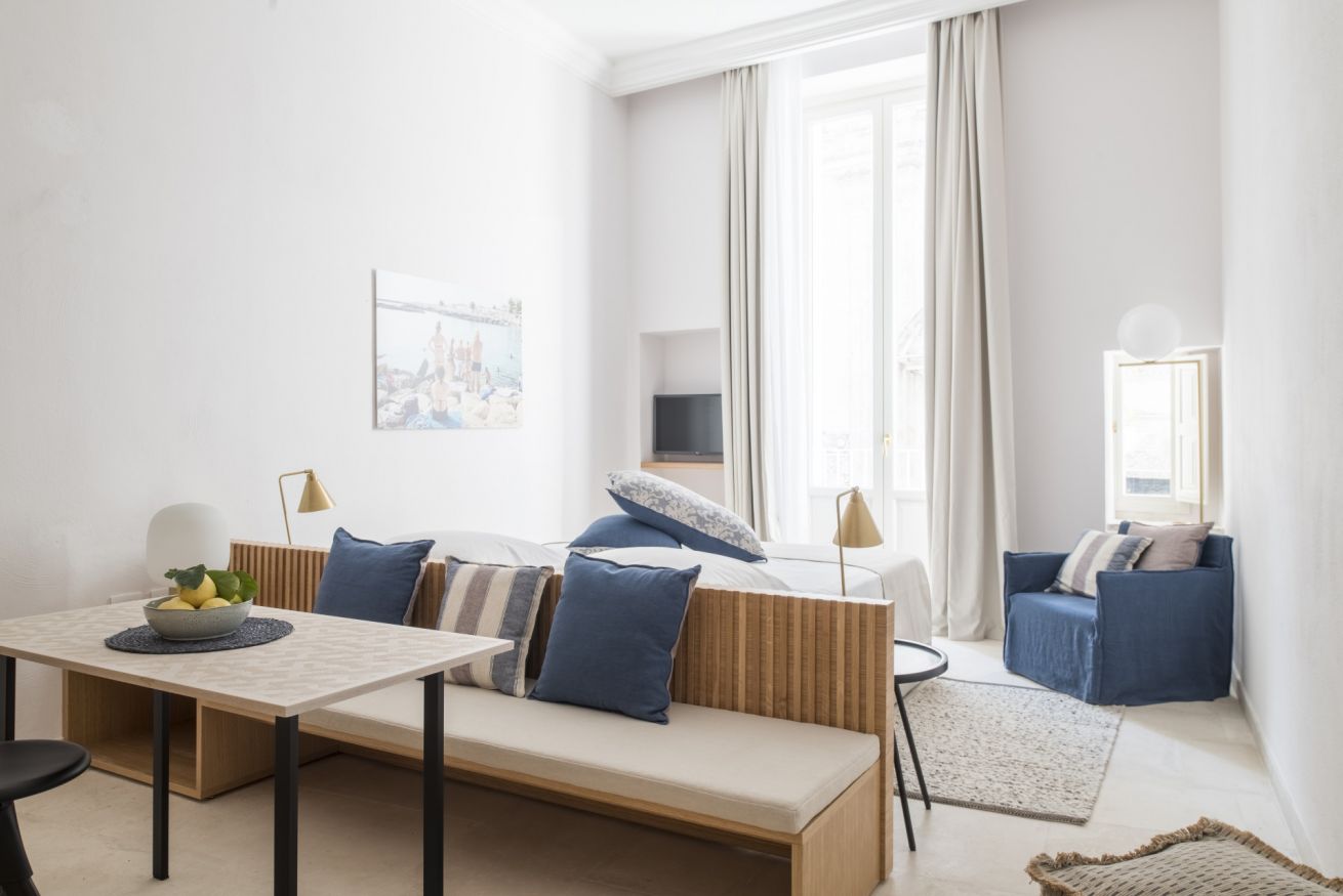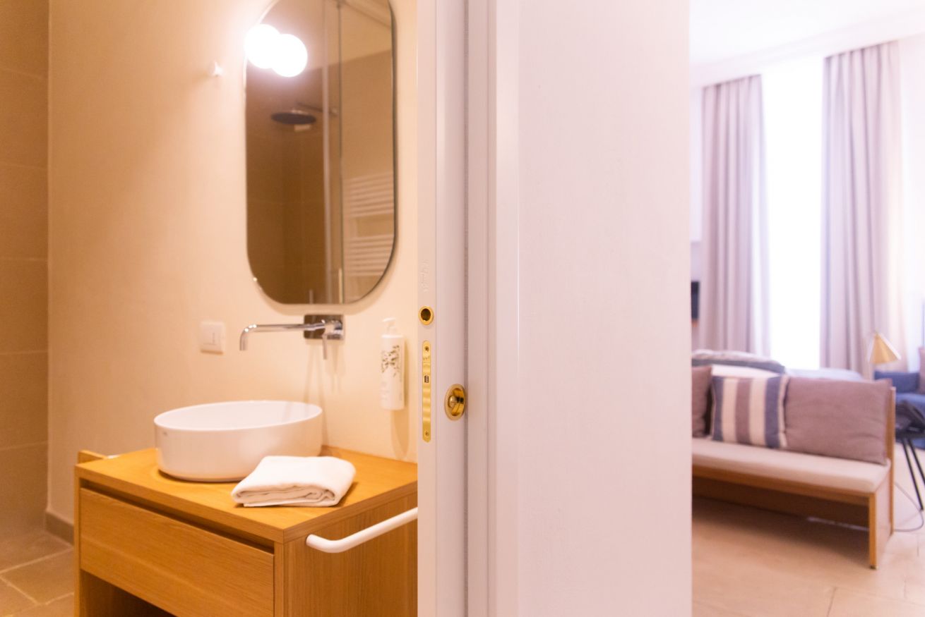 L'appartamento Deluxe ha una vista suggestiva su due delle più belle e famose chiese di Monopoli, la Cattedrale e la Chiesa del Purgatorio. Questa tipologia offre una maggiore comodità data dalle dimensioni degli spazi più confortevoli.